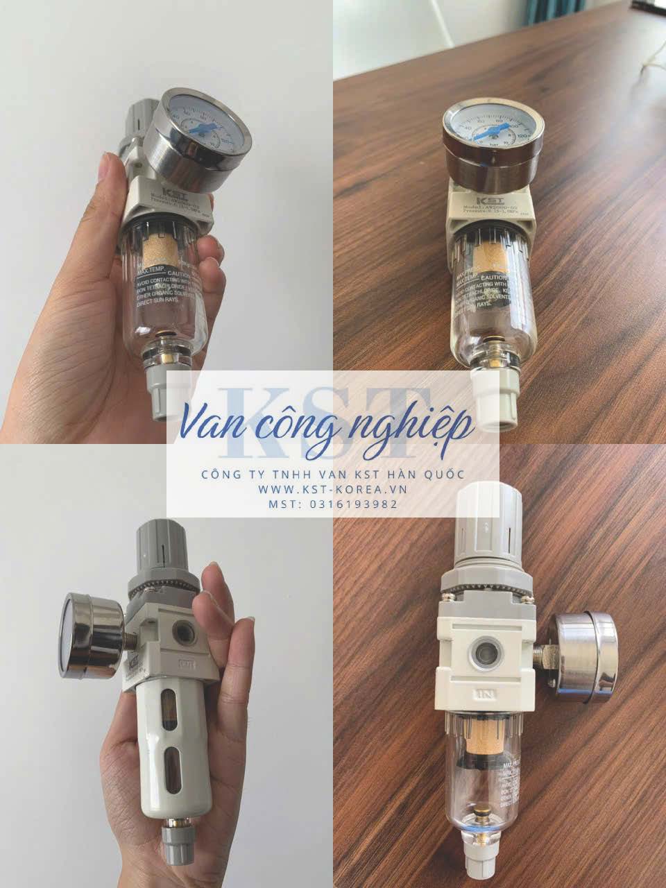 Bộ lọc khí nén AW2000-02 của thương hiệu KST (Hàn Quốc) là một thiết bị điều áp kèm lọc đơn (Filter Regulator), đóng vai trò cực kỳ quan trọng trong việc xử lý khí nén đầu vào. Nó kết hợp hai chức năng: lọc sạch tạp chất và điều chỉnh áp suất ổn định cho hệ thống.