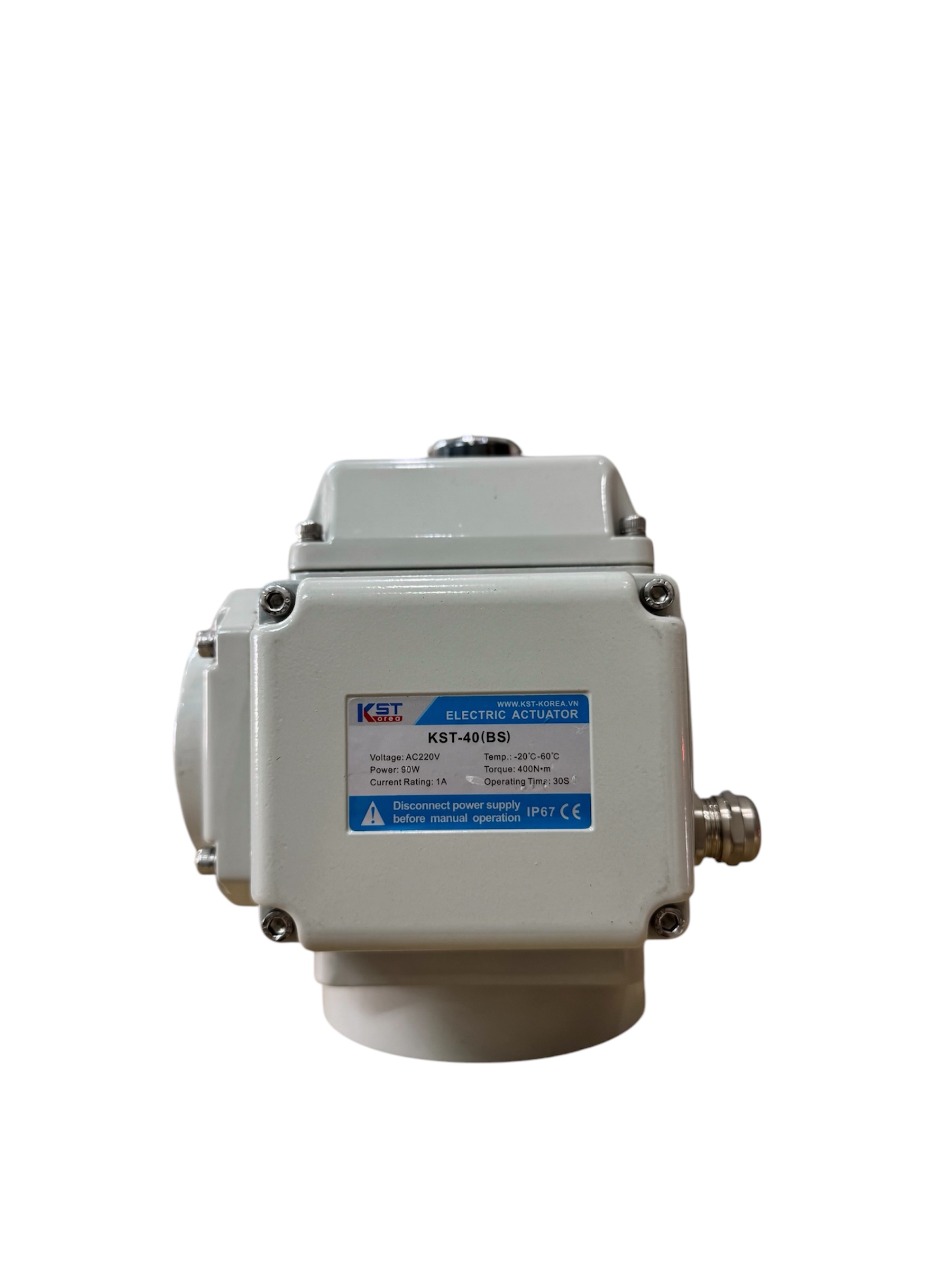 Bộ truyền động điện KST-40 là dòng đầu điều khiển van bằng điện công suất lớn của KST. Với lực kéo (mô-men xoắn) lên đến 400 Nm, đây là thiết bị chuyên dụng để vận hành các dòng van bướm và van bi kích cỡ lớn trong các hệ thống công nghiệp nặng, đòi hỏi lực đóng mở cực mạnh để đảm bảo độ kín khít.