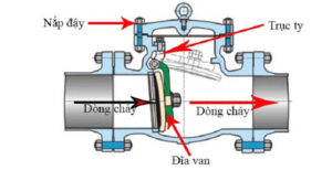 Van này thuộc nhóm Swing Check Valve, sử dụng cơ chế đĩa van (lá van) lật xung quanh một trục bản lề để kiểm soát dòng chảy.
