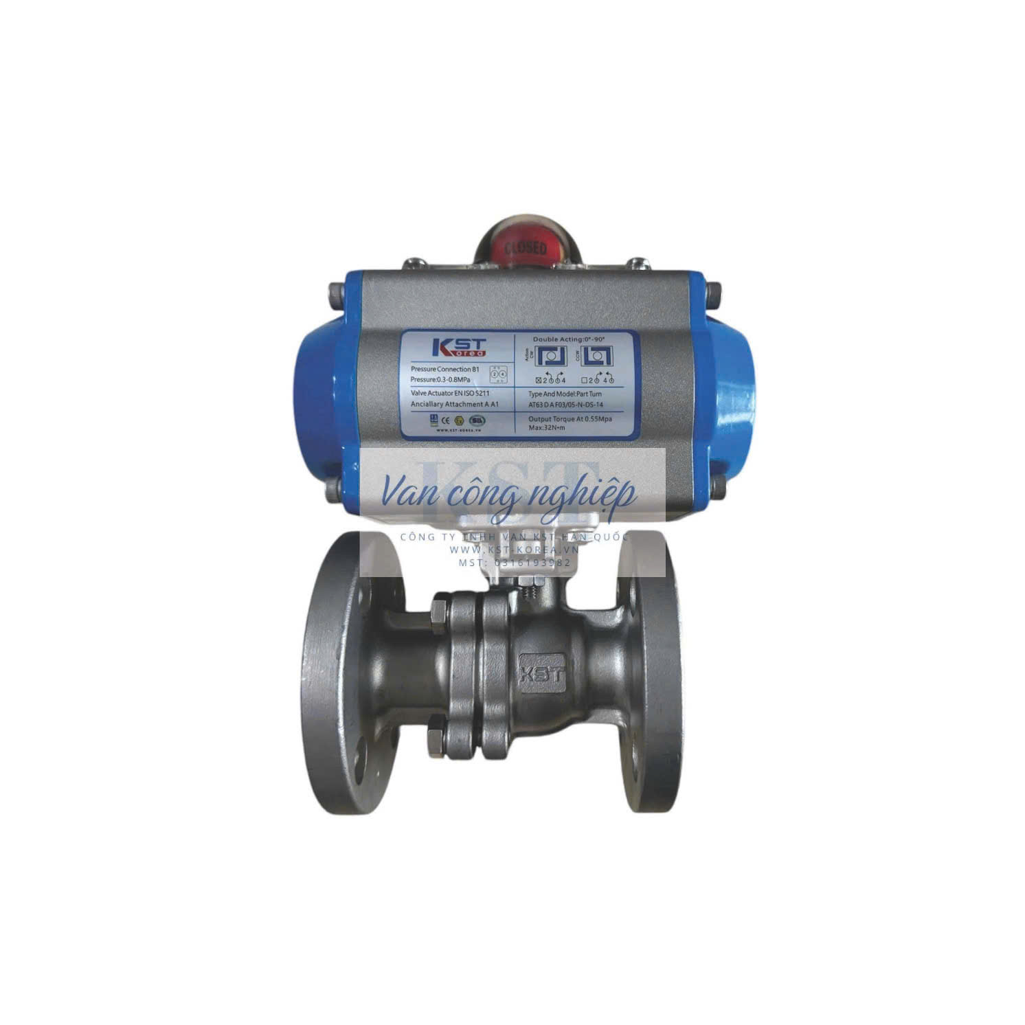 Van bi mặt bích điều khiển khí nén KST là một loại van bi tự động, được điều khiển bằng bộ truyền động khí nén, và có kiểu kết nối mặt bích. KST là một thương hiệu van công nghiệp nổi tiếng đến từ Hàn Quốc, chuyên sản xuất các thiết bị điều khiển tự động chất lượng cao.