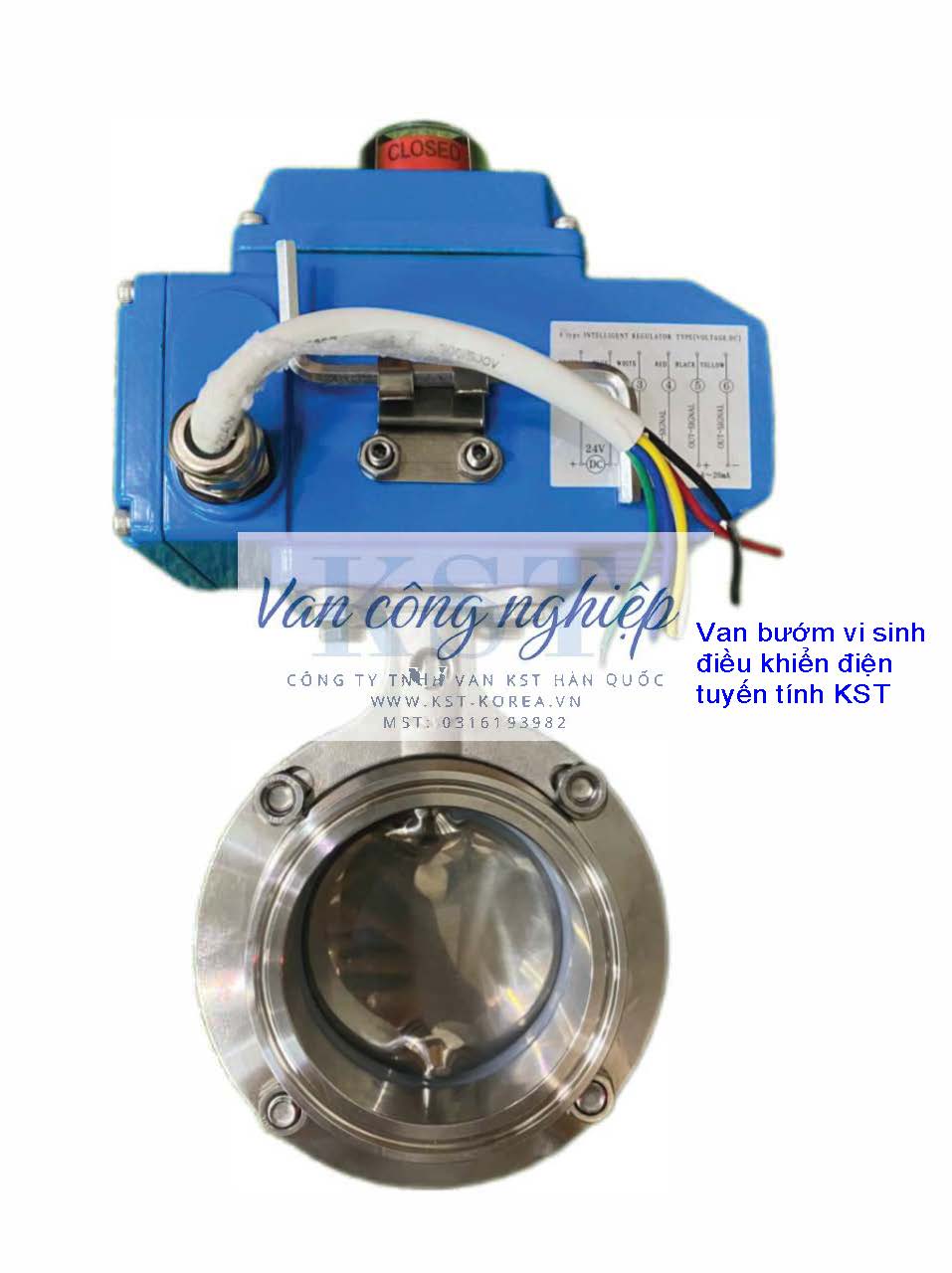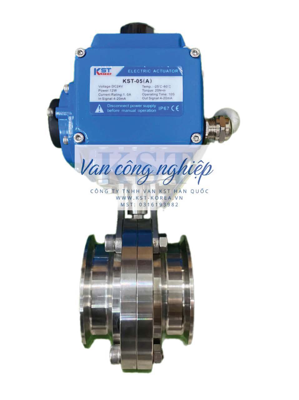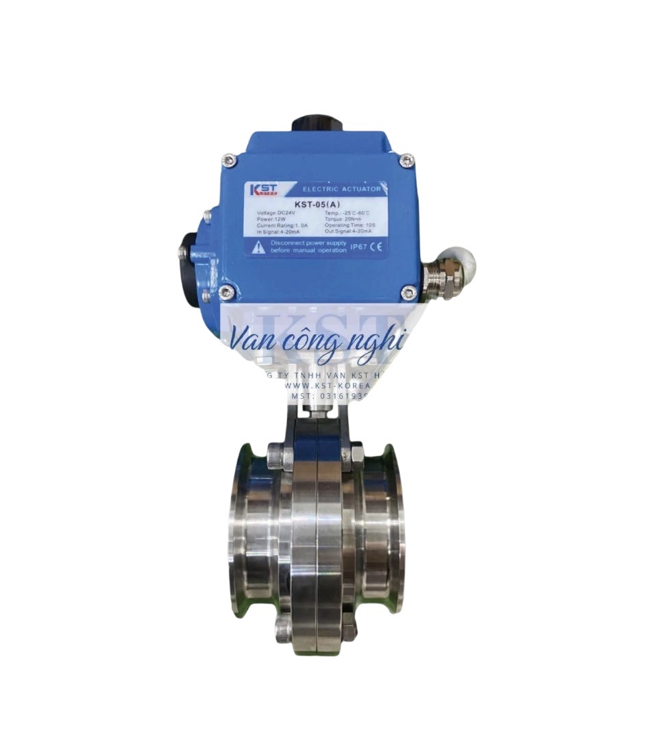Van Bướm Inox Vi Sinh Điều Khiển Điện KST. Đây là một giải pháp van tự động hóa cao cấp, kết hợp các yếu tố cốt lõi để đáp ứng các yêu cầu khắt khe về vệ sinh, kiểm soát chính xác và hoạt động tự động trong các ngành công nghiệp nhạy cảm.