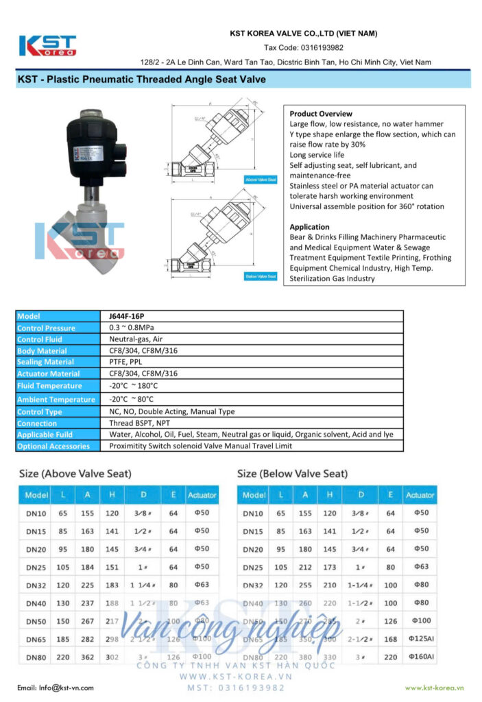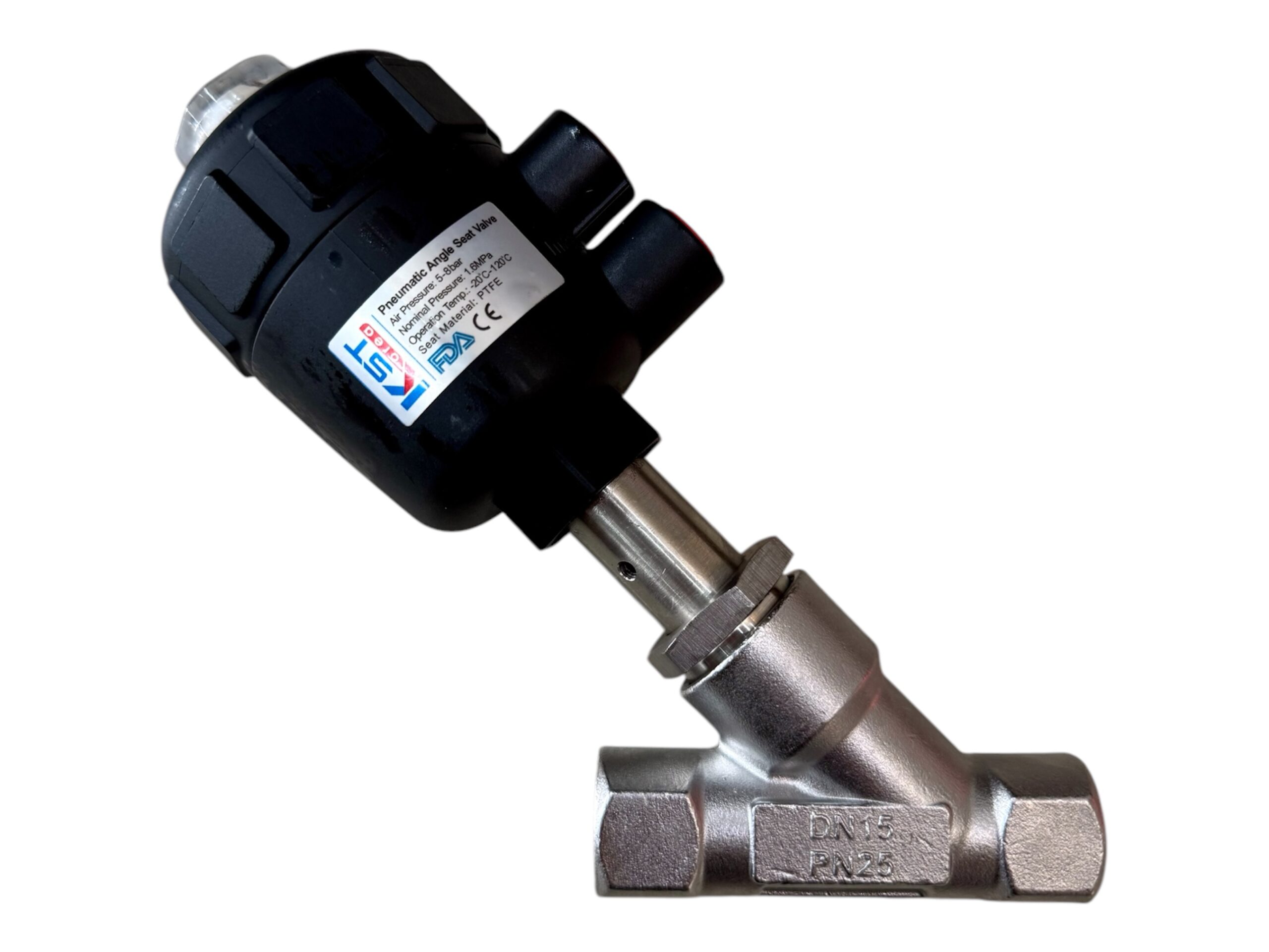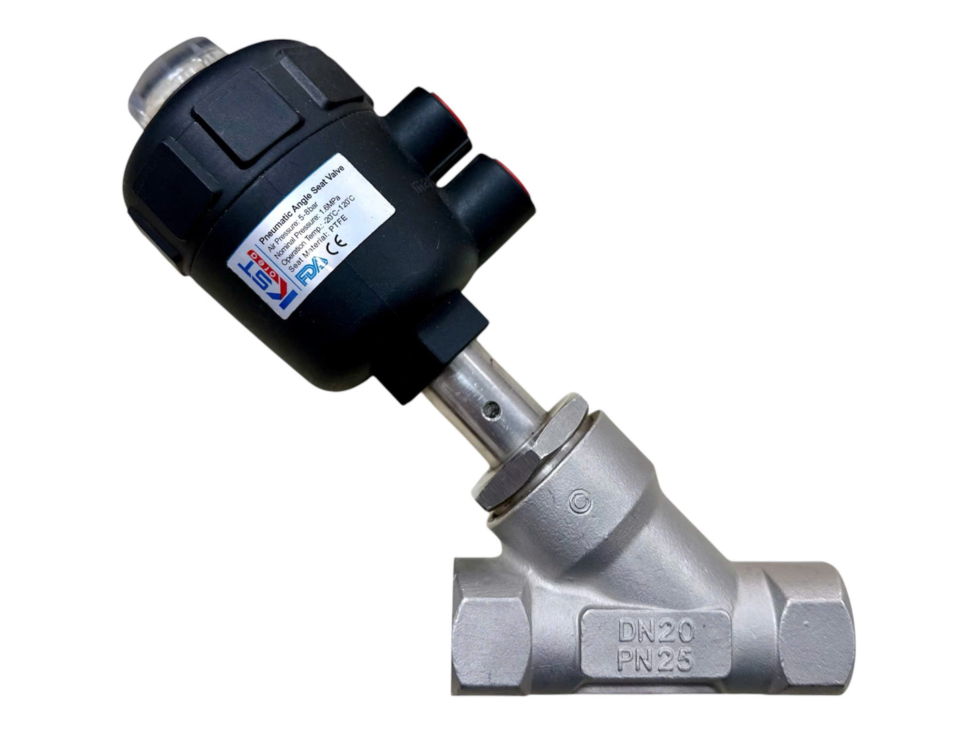 Van xiên khí nén nối ren KST (đầu nhựa) chính là dòng phổ biến nhất, “quốc dân” nhất trong các loại van xiên hiện nay.